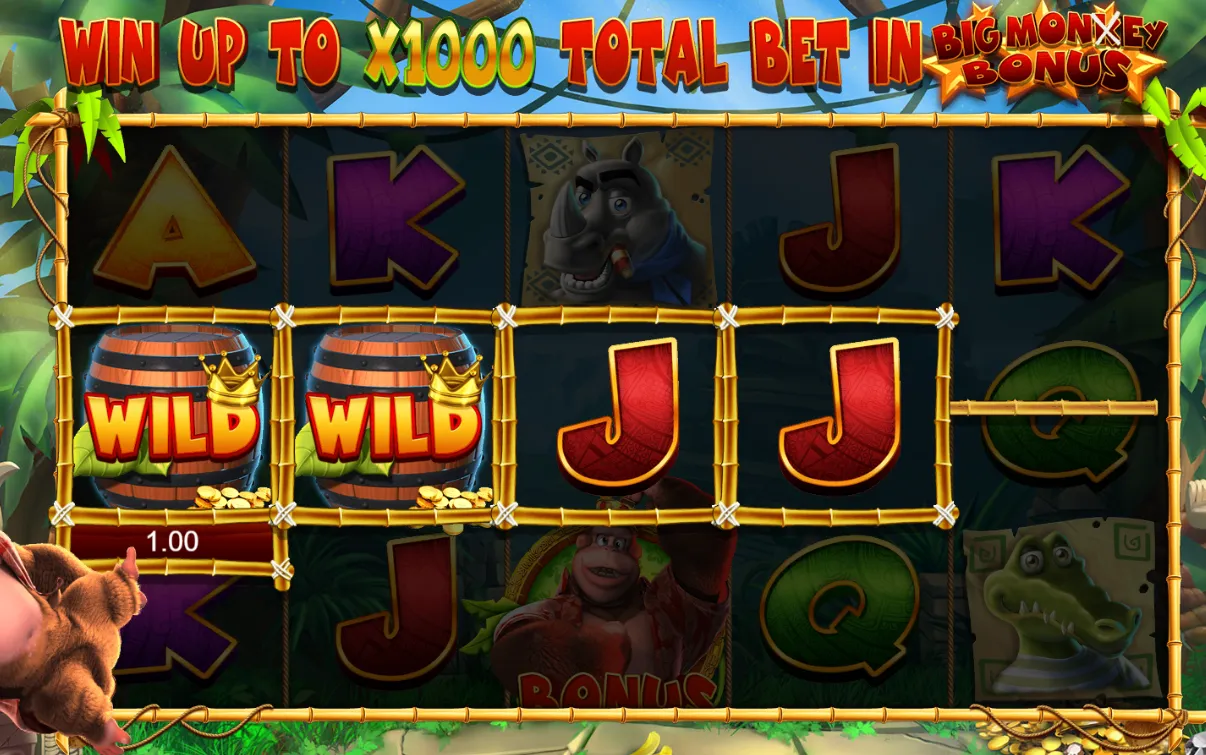 Triggered by landing on the Barrel Blast segment of the King Kong Bonus wheel, this feature presents players with a pick-and-match game. Several barrels appear on the screen, and you select them to reveal hidden items. Match three of the same item to win a multiplier prize, which is then applied to your total bet. What makes this bonus particularly exciting is the chance to uncover Golden Monkey symbols—if you find three of them, you’re instantly transported to the Big Monkey Bonus, the slot’s top prize round. The Barrel Blast Bonus is engaging because it combines luck with player choice, and the possibility of advancing to an even bigger bonus keeps the tension high throughout.