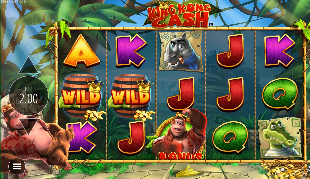 | Bonus Features | 9 total (Free Spins, Bonus Wheel, Barrel Blast, King Kong Trail, etc.) |